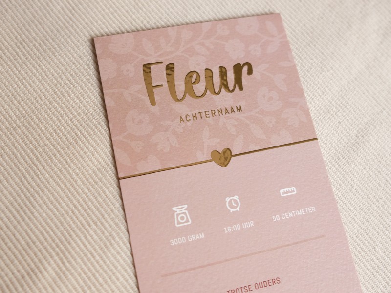 Is jullie kindje geboren? Jullie geven mij alle gegevens door, ik stuur vervolgens het ingevulde digitale ontwerp. Als jullie hier akkoord op geven gaan de kaarten in productie. De levertijd is afhankelijk van de kaart en afwerking deze bedraagt hooguit 4-5 werkdagen. Je pakket wordt verzonden en je ontvangt hiervan een track en trace code.