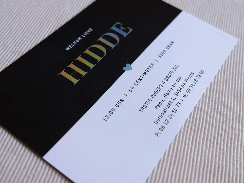 Is jullie kindje geboren? Jullie geven mij alle gegevens door, ik stuur vervolgens het ingevulde digitale ontwerp. Als jullie hier akkoord op geven gaan de kaarten in productie. De levertijd is afhankelijk van de kaart en afwerking deze bedraagt hooguit 4-5 werkdagen. Je pakket wordt verzonden en je ontvangt hiervan een track en trace code.