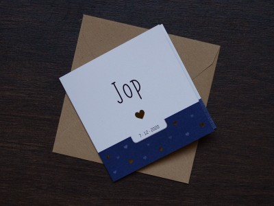Is jullie kindje geboren? Jullie geven mij alle gegevens door, ik stuur vervolgens het ingevulde digitale ontwerp. Als jullie hier akkoord op geven gaan de kaarten in productie. De levertijd is afhankelijk van de kaart en afwerking deze bedraagt hooguit 4-5 werkdagen. Je pakket wordt verzonden en je ontvangt hiervan een track en trace code.