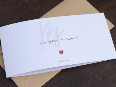Als het digitale ontwerp akkoord is, laat ik een proefdruk maken bij de drukker. Deze kunnen jullie na 3-4 dagen in de brievenbus verwachten. De proefdruk samen met de enveloppen, kun je alvast in alle rust beginnen te schrijven.
