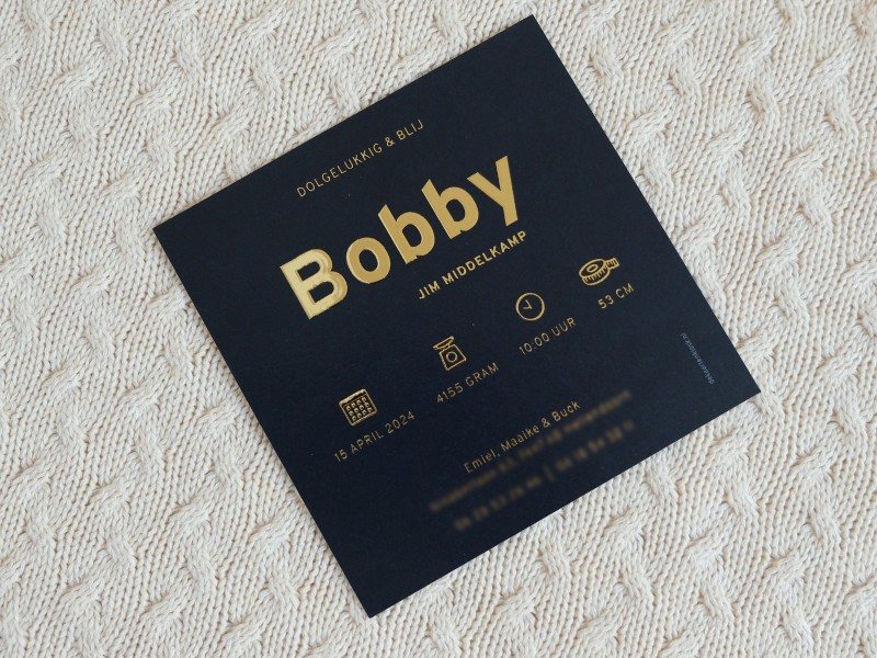 Is jullie kindje geboren? Jullie geven mij alle gegevens door, ik stuur vervolgens het ingevulde digitale ontwerp. Als jullie hier akkoord op geven gaan de kaarten in productie. De levertijd is afhankelijk van de kaart en afwerking deze bedraagt hooguit 4-5 werkdagen. Je pakket wordt verzonden en je ontvangt hiervan een track en trace code.