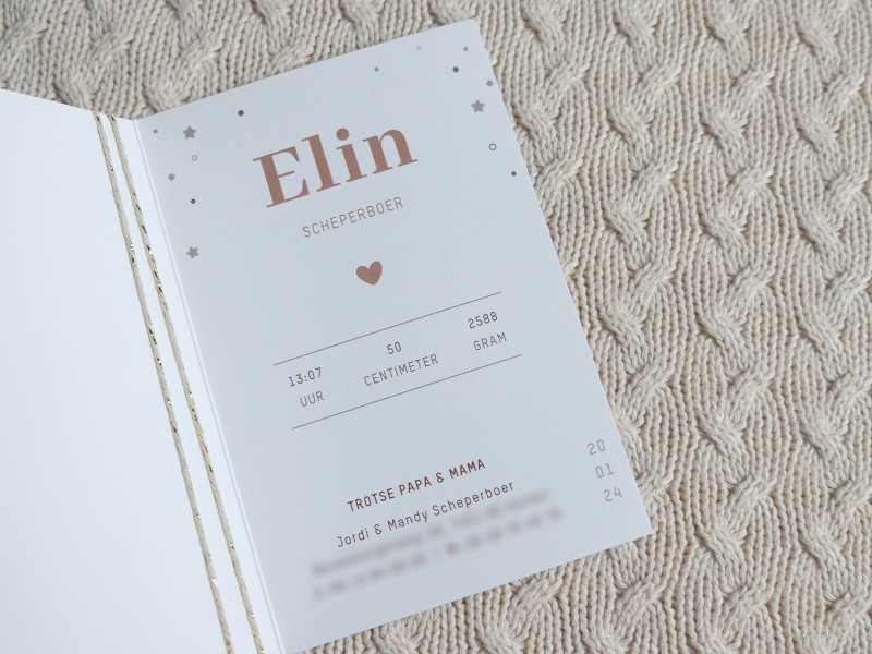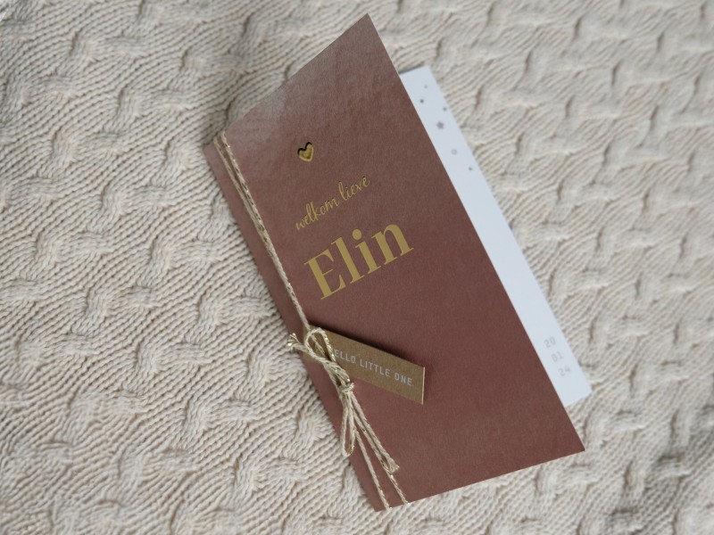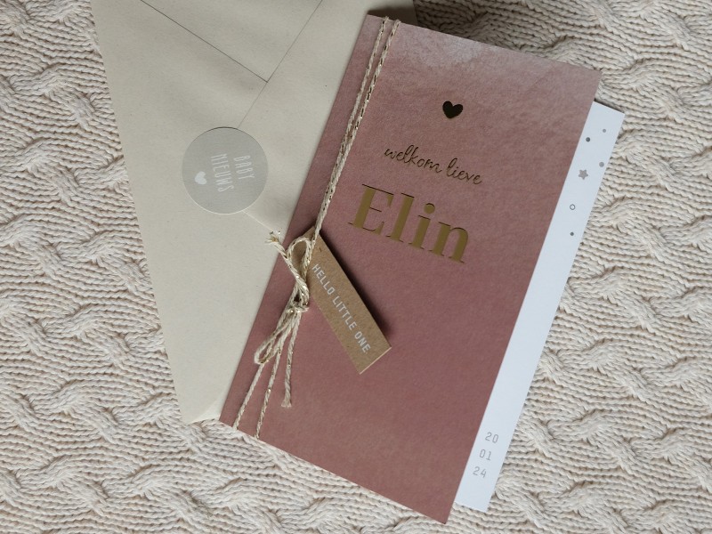 De voorkant van de kaart is iets korter waardoor je rechtsonder de geboortedatum kunt zien. De kaart is afgewerkt met goudfolie!