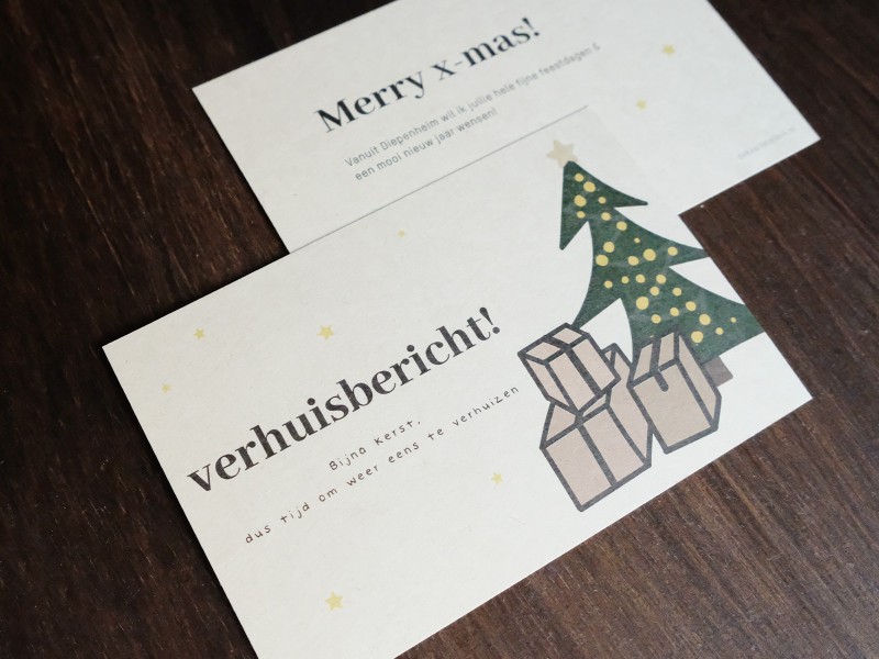 Voor Mirna moet ik een verhuis- en kerstkaart in 1 maken. Wat vind jij van het resultaat?