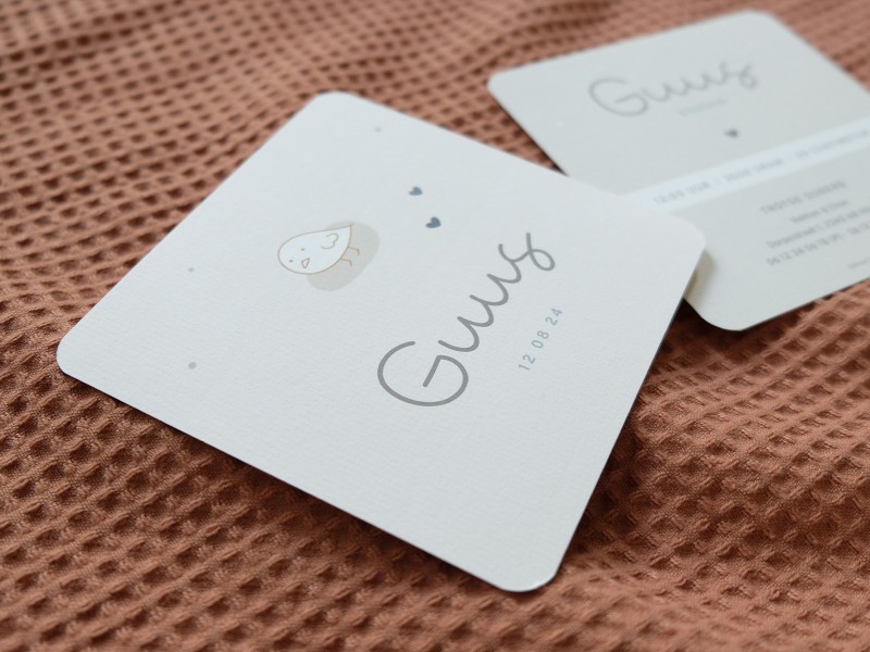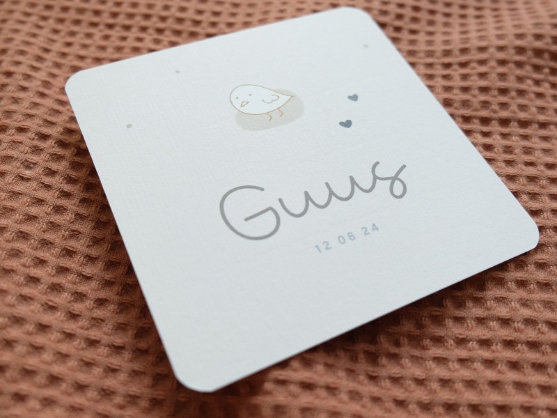 Is jullie kindje geboren? Jullie geven mij alle gegevens door, ik stuur vervolgens het ingevulde digitale ontwerp. Als jullie hier akkoord op geven gaan de kaarten in productie. De levertijd is afhankelijk van de kaart en afwerking deze bedraagt hooguit 4-5 werkdagen. Je pakket wordt verzonden en je ontvangt hiervan een track en trace code.