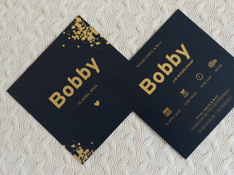 Is jullie kindje geboren? Jullie geven mij alle gegevens door, ik stuur vervolgens het ingevulde digitale ontwerp. Als jullie hier akkoord op geven gaan de kaarten in productie. De levertijd is afhankelijk van de kaart en afwerking deze bedraagt hooguit 4-5 werkdagen. Je pakket wordt verzonden en je ontvangt hiervan een track en trace code.