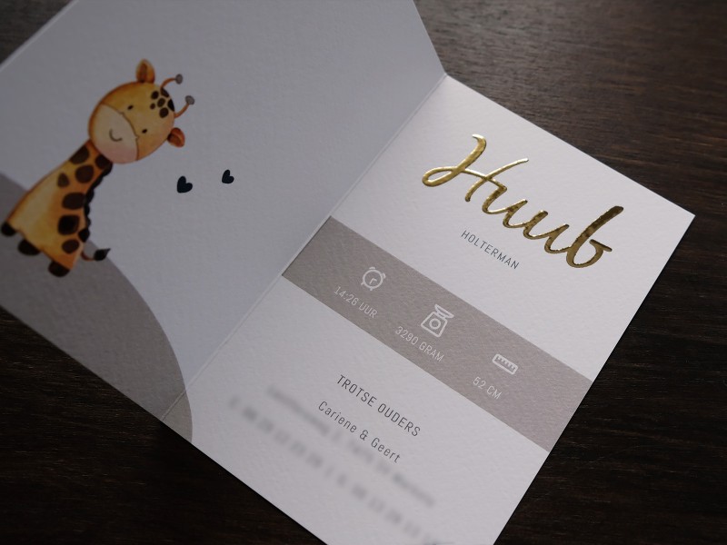 Huub is geboren 🥰 De kaart is gedrukt op een gehamerd papiersoort, wat zorgt voor een luxe uitstraling. Het goudfolie maakt het helemaal af ✨