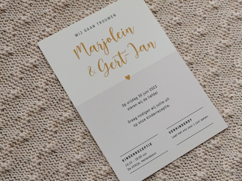 JUST MARRIED! 💍 Marjolein & Gert-Jan zijn getrouwd! Een bijzondere dag, en daar hoort natuurlijk ook een bijzondere kaart bij. Naast de trouwkaart heb ik ook de ‘save the date’ en de uitnodiging voor de kinderreceptie gemaakt. Een hele leuke opdracht en ik ben stiekem best trots op het resultaat! 🤩