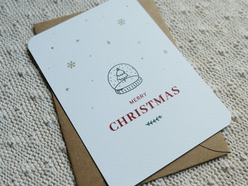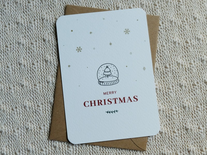Deze kerstkaart is gedrukt op stevig 350 grams klassiek papier. De kaart is afgewerkt met ronde hoekjes en zal geleverd worden met een mooie bruine kraft envelop.