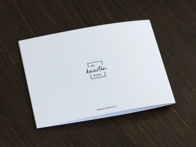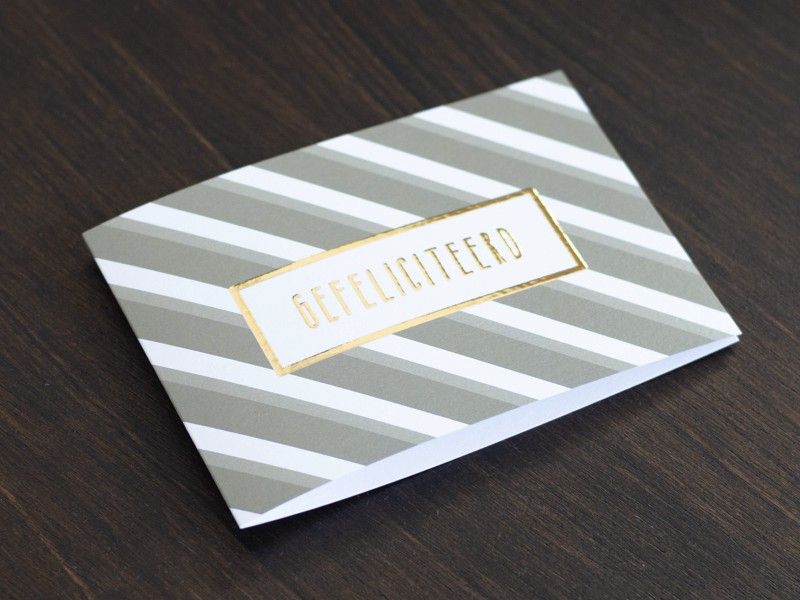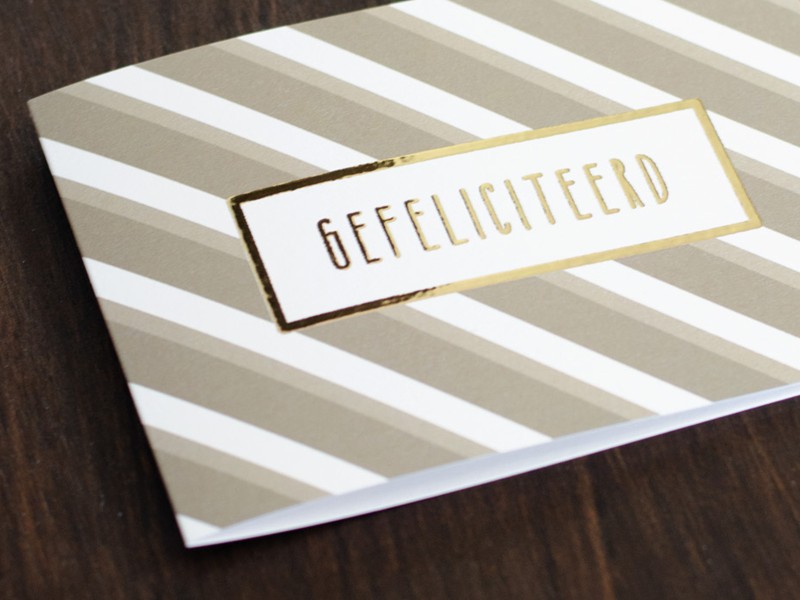 Dit kaartje is geprint op 300 grams gestreken karton met luxe reliëf afgewerkt met goudfolie druk.