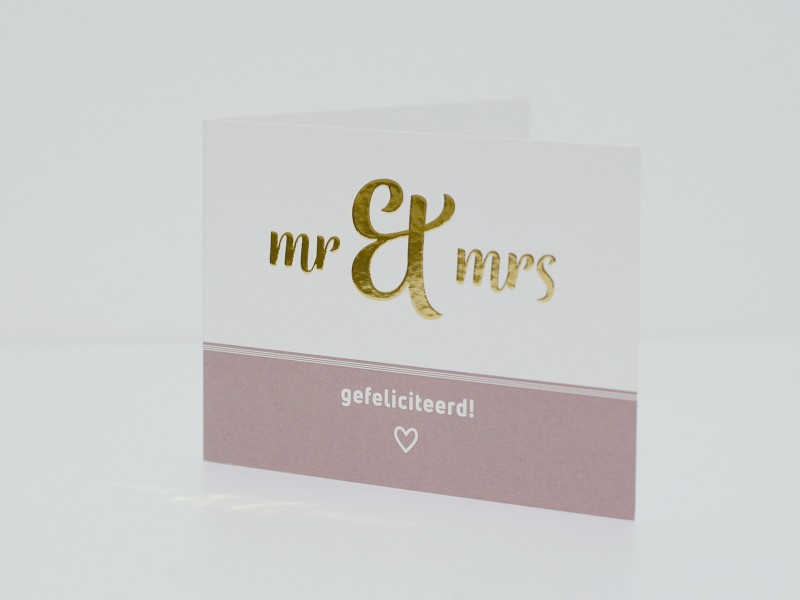 Dit kaartje is geprint op 300 grams gestreken karton met luxe reliëf afgewerkt met goudfolie druk.