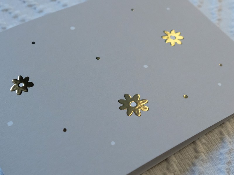 Dit kaartje is geprint op 300 grams gestreken karton met luxe reliëf afgewerkt met goudfolie druk.