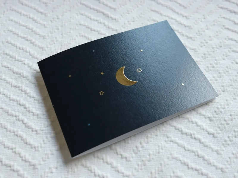 Dit kaartje is geprint op 300 grams gestreken karton met luxe reliëf afgewerkt met goudfolie druk.